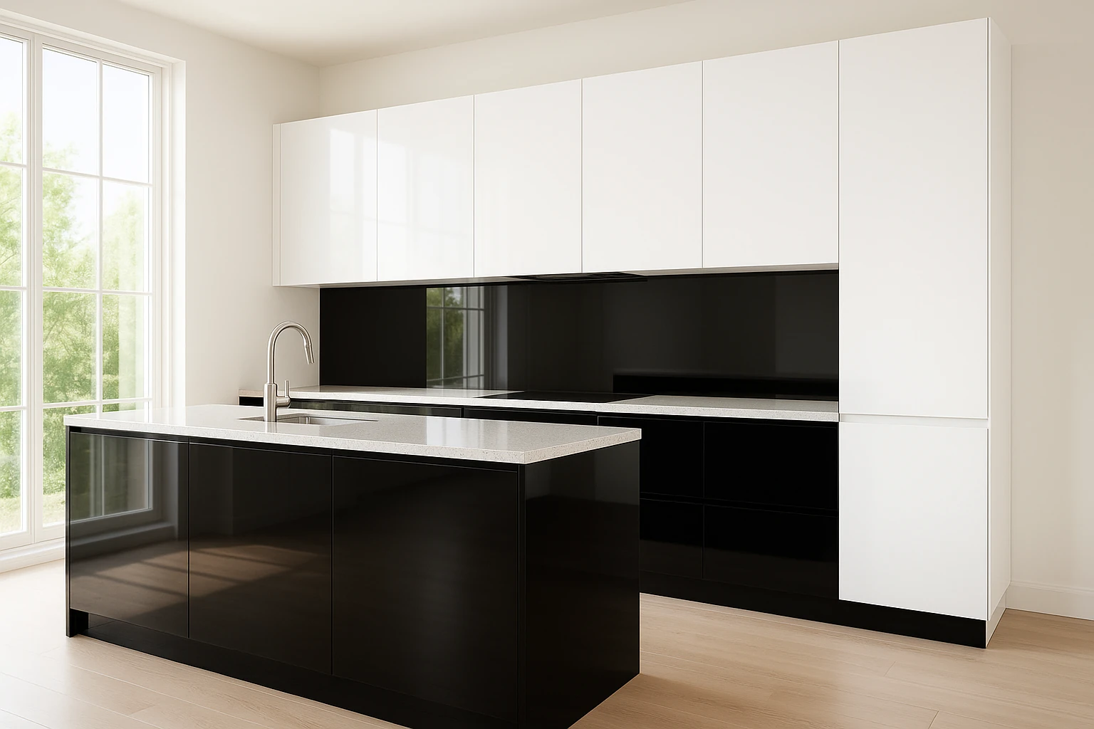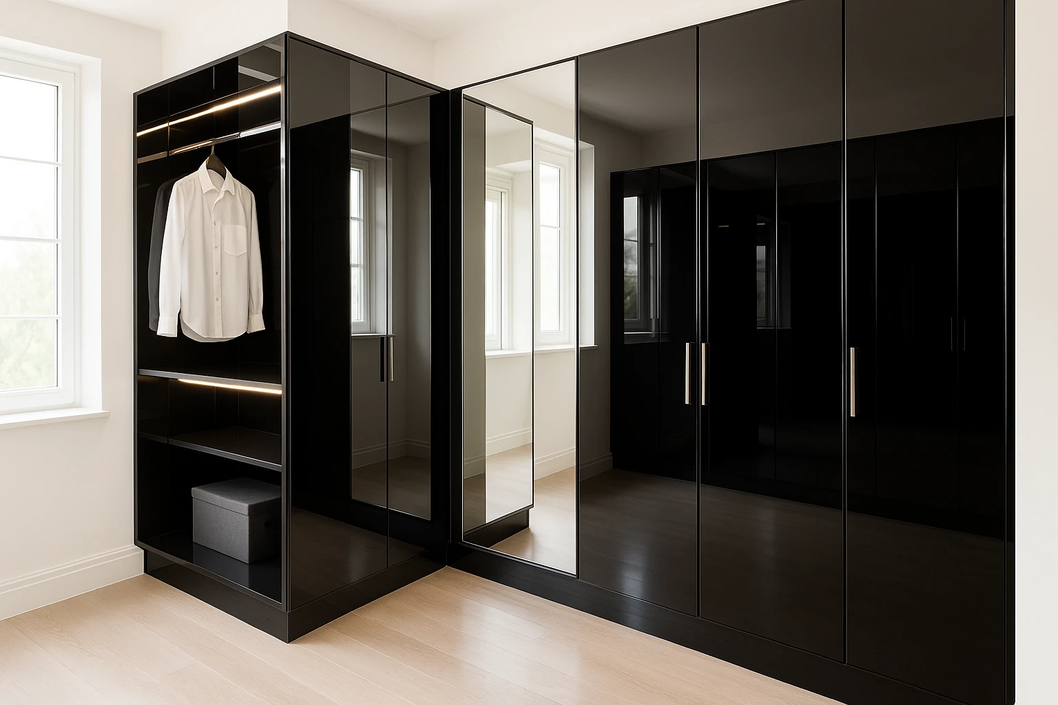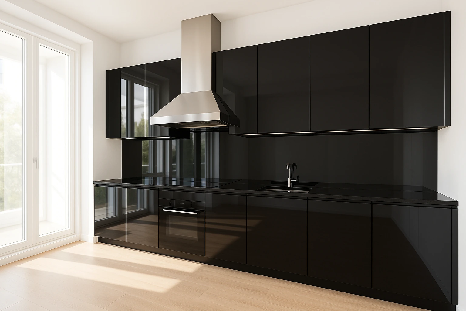 Negro espejo de alto impacto. Superficies que reflejan la luz y multiplican el espacio.