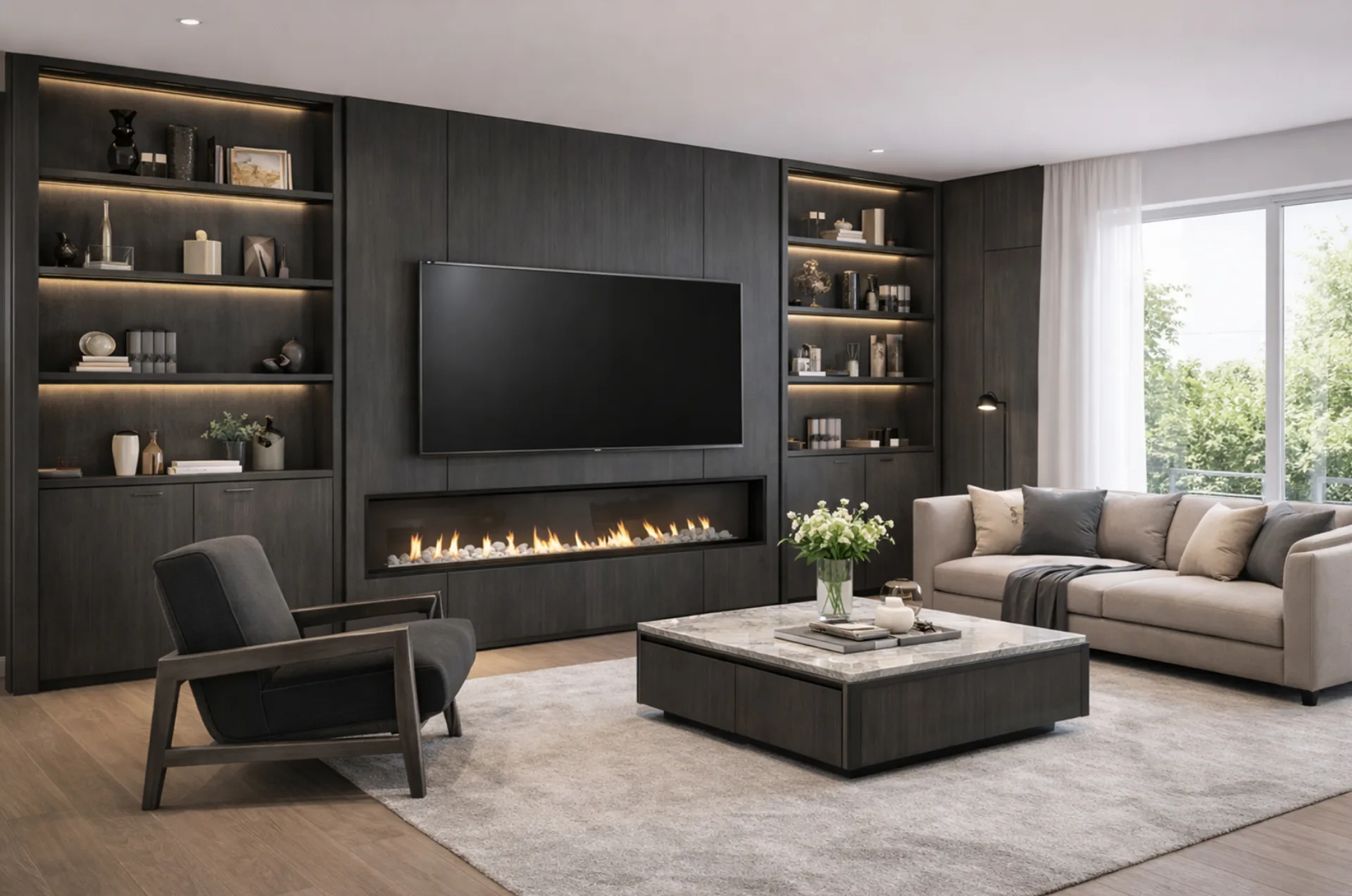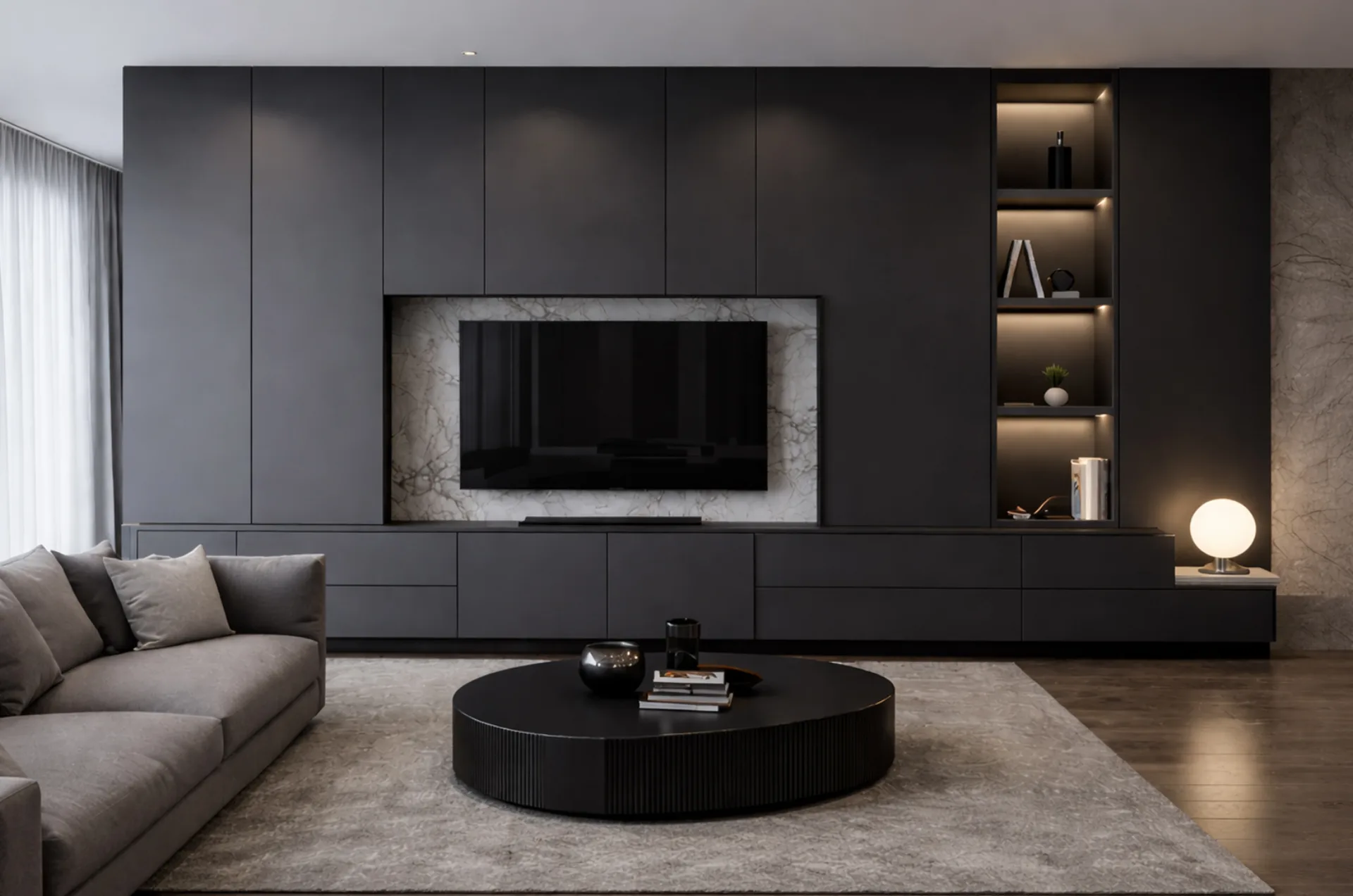 Negro profundo con matices de ónix. Intensidad y misterio para espacios audaces.