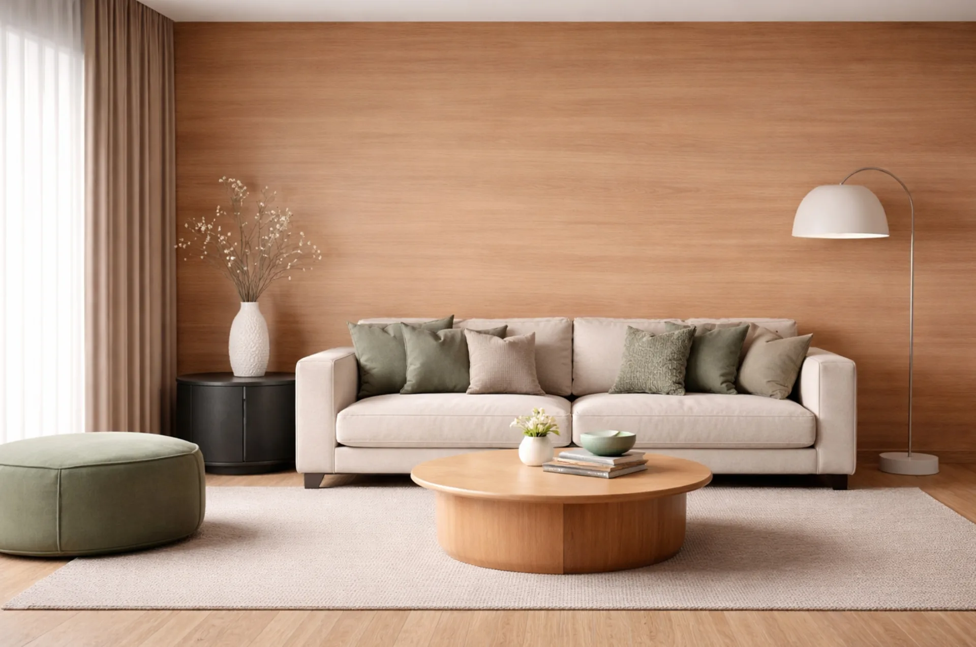 Tablero de melamina media-oscura con veta definida y poro sincronizado. Autenticidad neoyorquina al tacto.